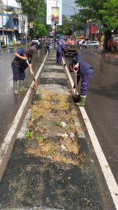 Kegiatan yang dilakukan Satgas Dinas PU Makassar ini bertujuan agar rumput liar dan sampah yang tumbuh liar di median jalan ini tifak menyumbat saluran air agar tidak membuat genangan ketika terjadi hujan.